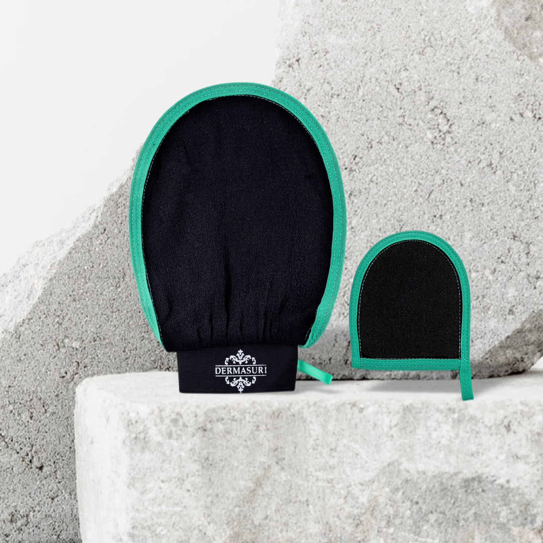 Experience the power of deep exfoliation with Dermasuri. Our expertly designed exfoliating mitts and skincare products visibly remove dry skin, revealing a smoother, brighter complexion.